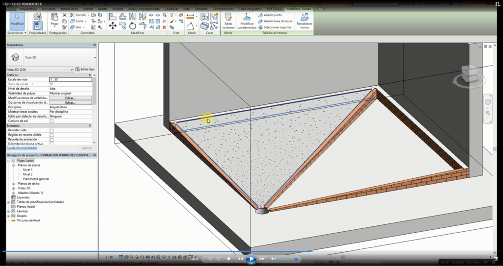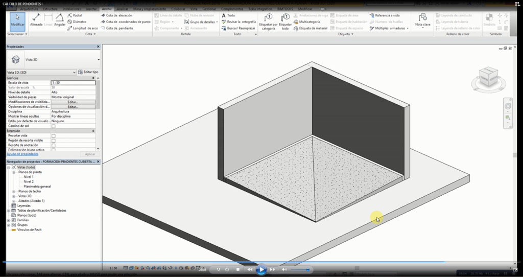 En este caso veremos cómo realizar el modelado de las pendientes o caídas de las aguas de dos formas diferentes, la primera será un cálculo previo pero sin tener en cuenta la medición exacta de los diferentes materiales, para poder obtener el porcentaje de pendientes que estimemos oportuno, siempre eso sí, cumpliendo CTE.